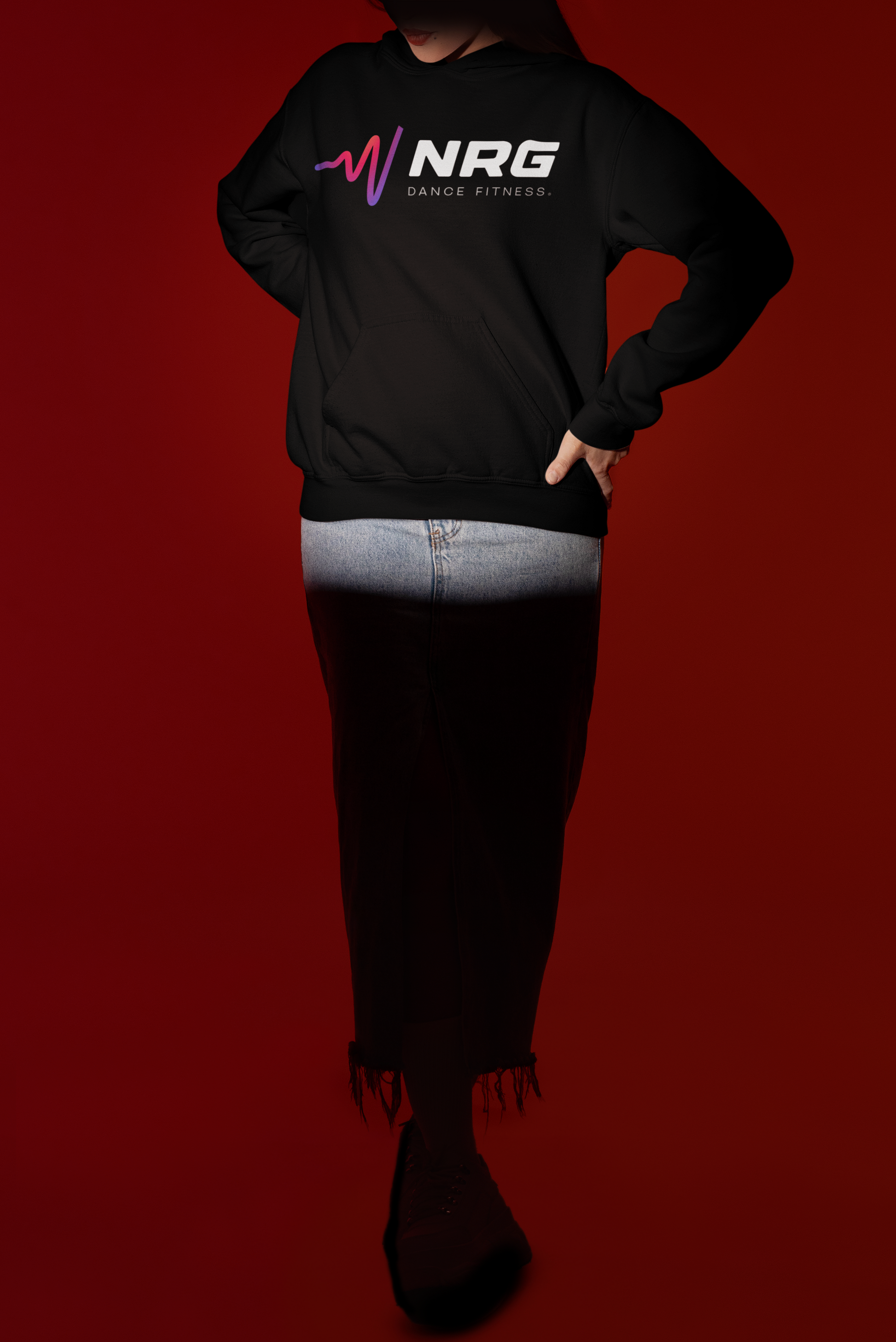 NRG Sweatshirt Hoodie- Black with Pink/Blue Front Logo (Large)